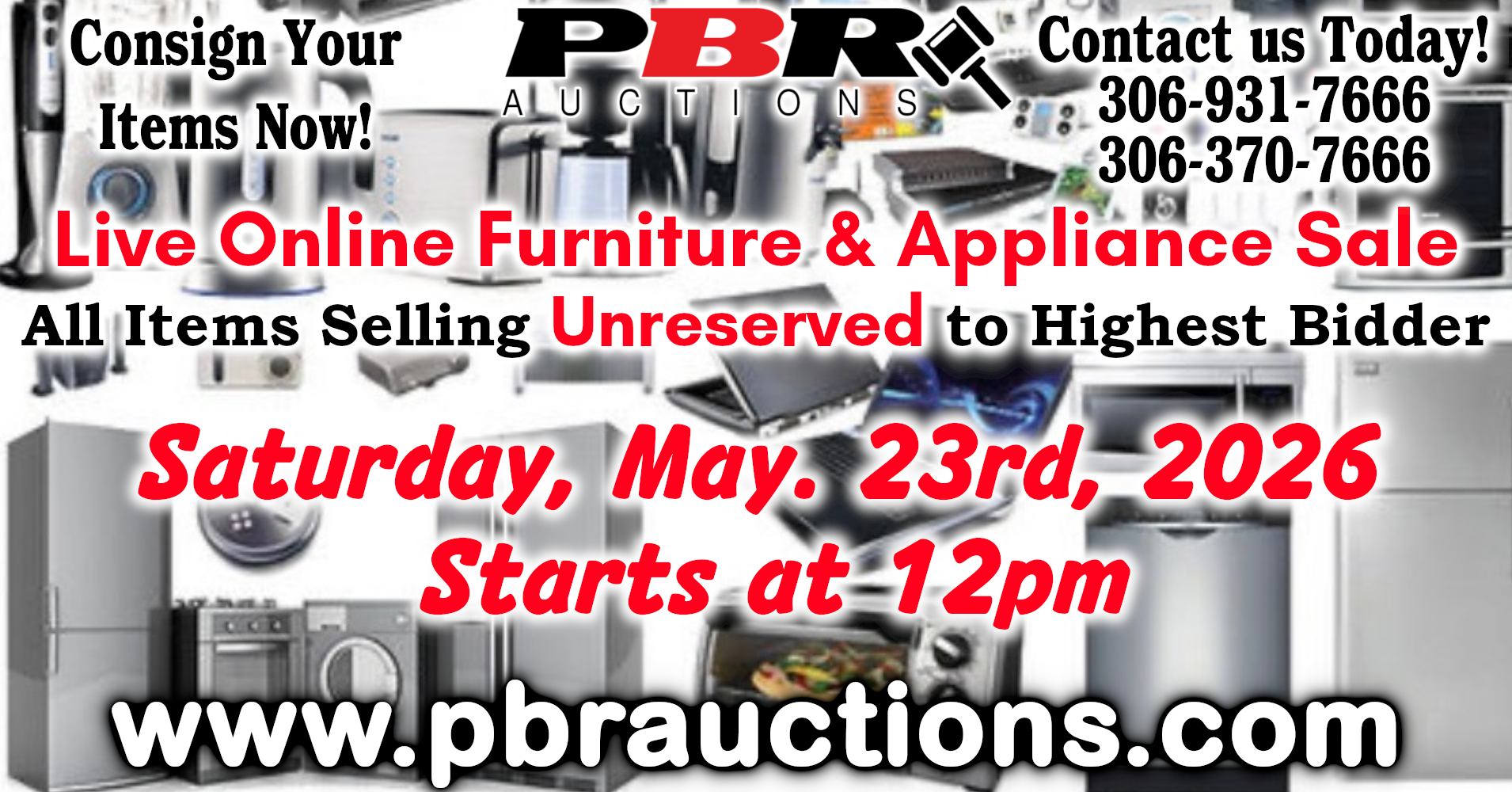 Unreserved Live Online Furniture & Appliance Auction - May 23rd, 2026 - Starting at 12pm