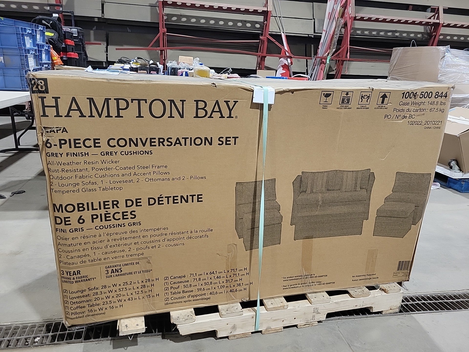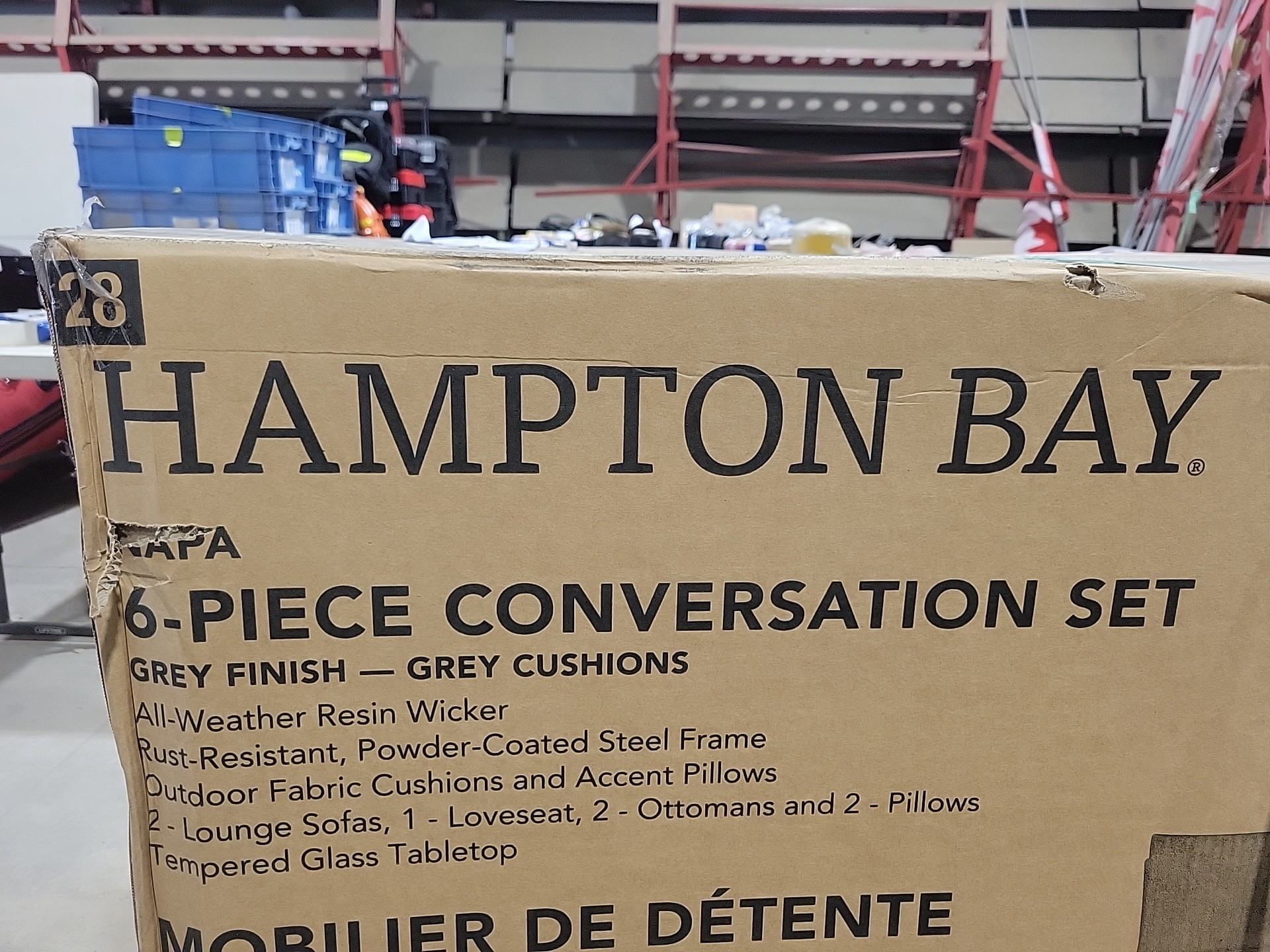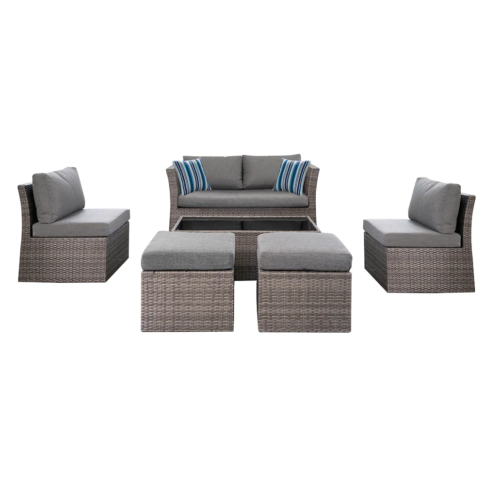 Hampton Bay Napa 6-Piece Woven Steel Patio Conversation Set with Grey Cushions