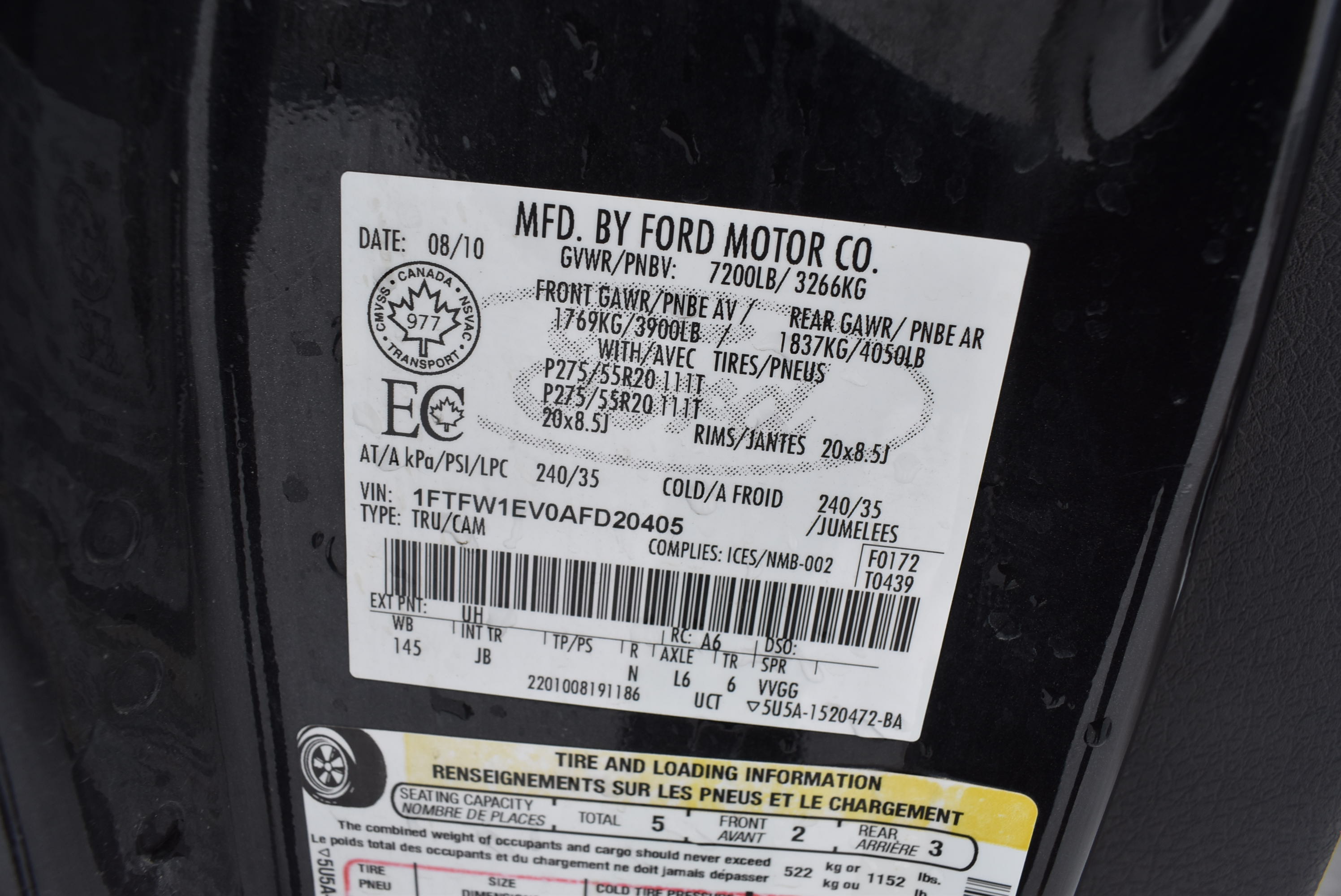 • VIN# : 1FTFW1EV0AFD20405