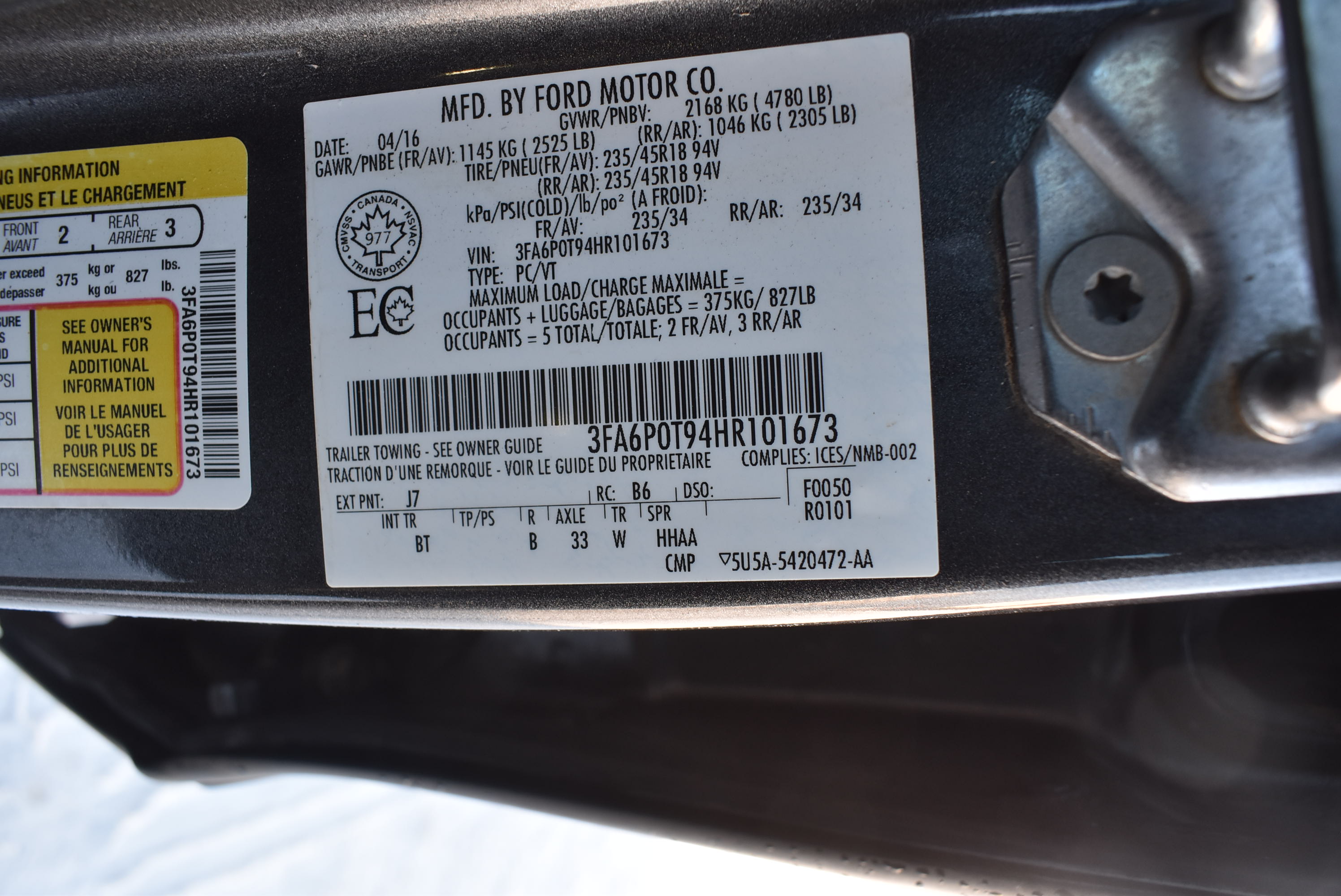 • VIN# : 3FA6P0T94HR101673