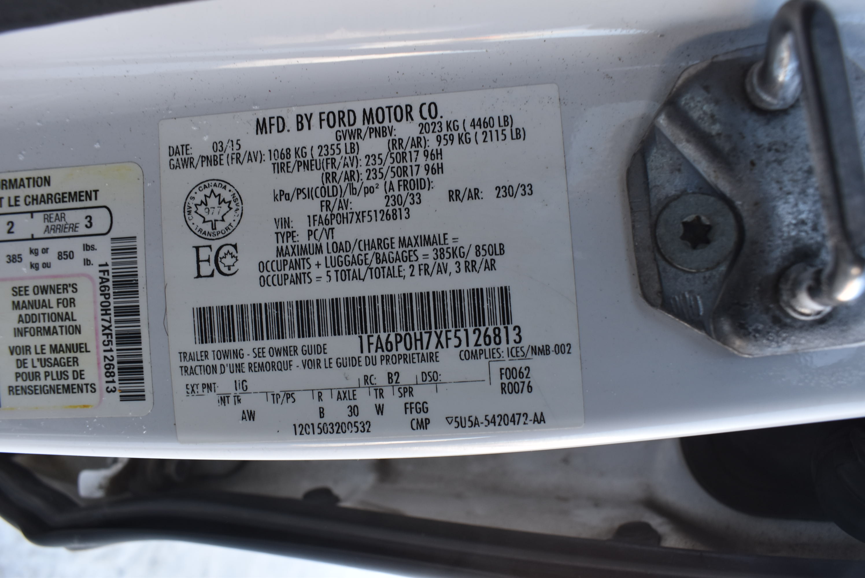 • VIN# : 1FA6P0H7XF5126813