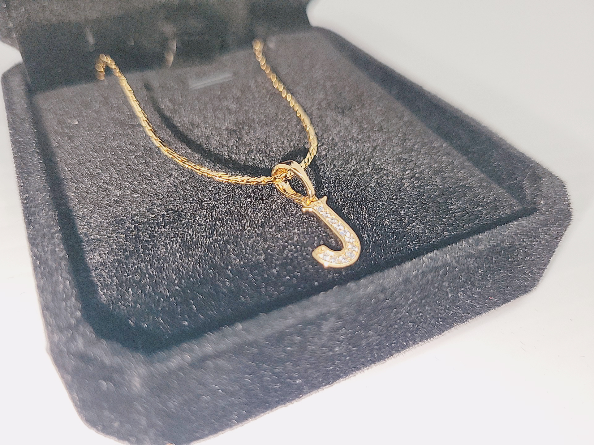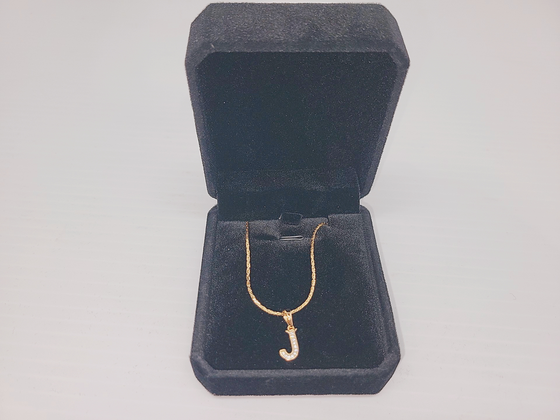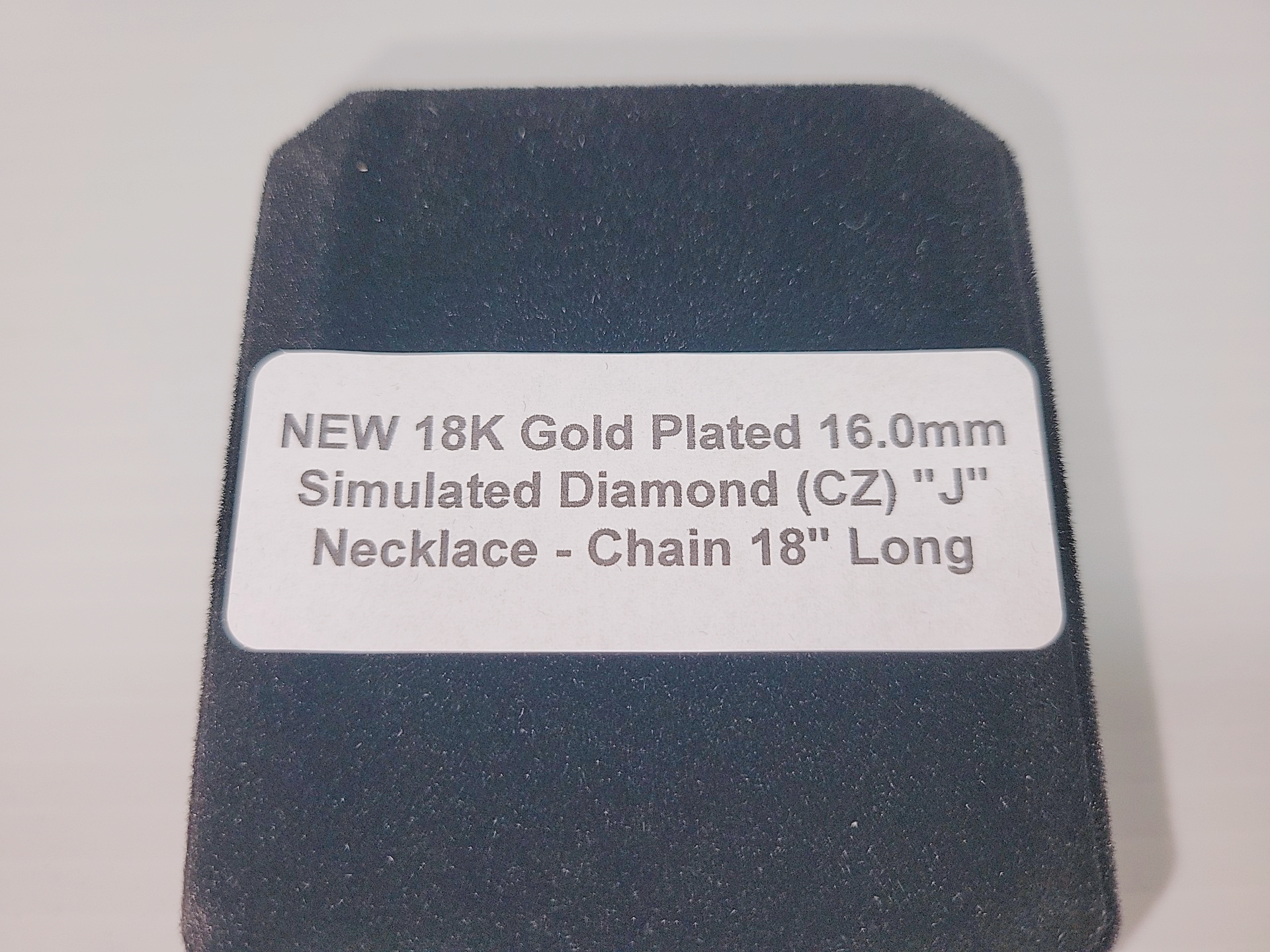 NEW 18K Gold Plated 16.0mm Simulated Diamond (CZ) "J" Necklace - Chain 18" Long